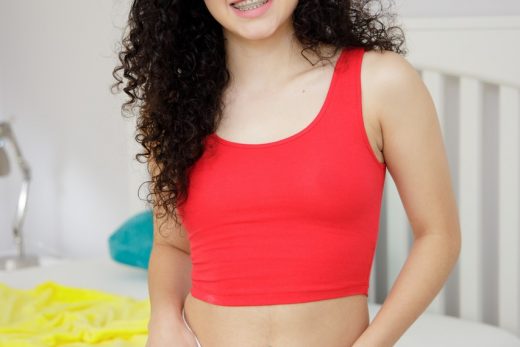 Beautiful teen Mia Luna finger spreads her tight pink pussy in fetish apparel