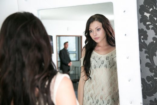 Horny girl Megan Sage seduces her stepdad while standing butt naked